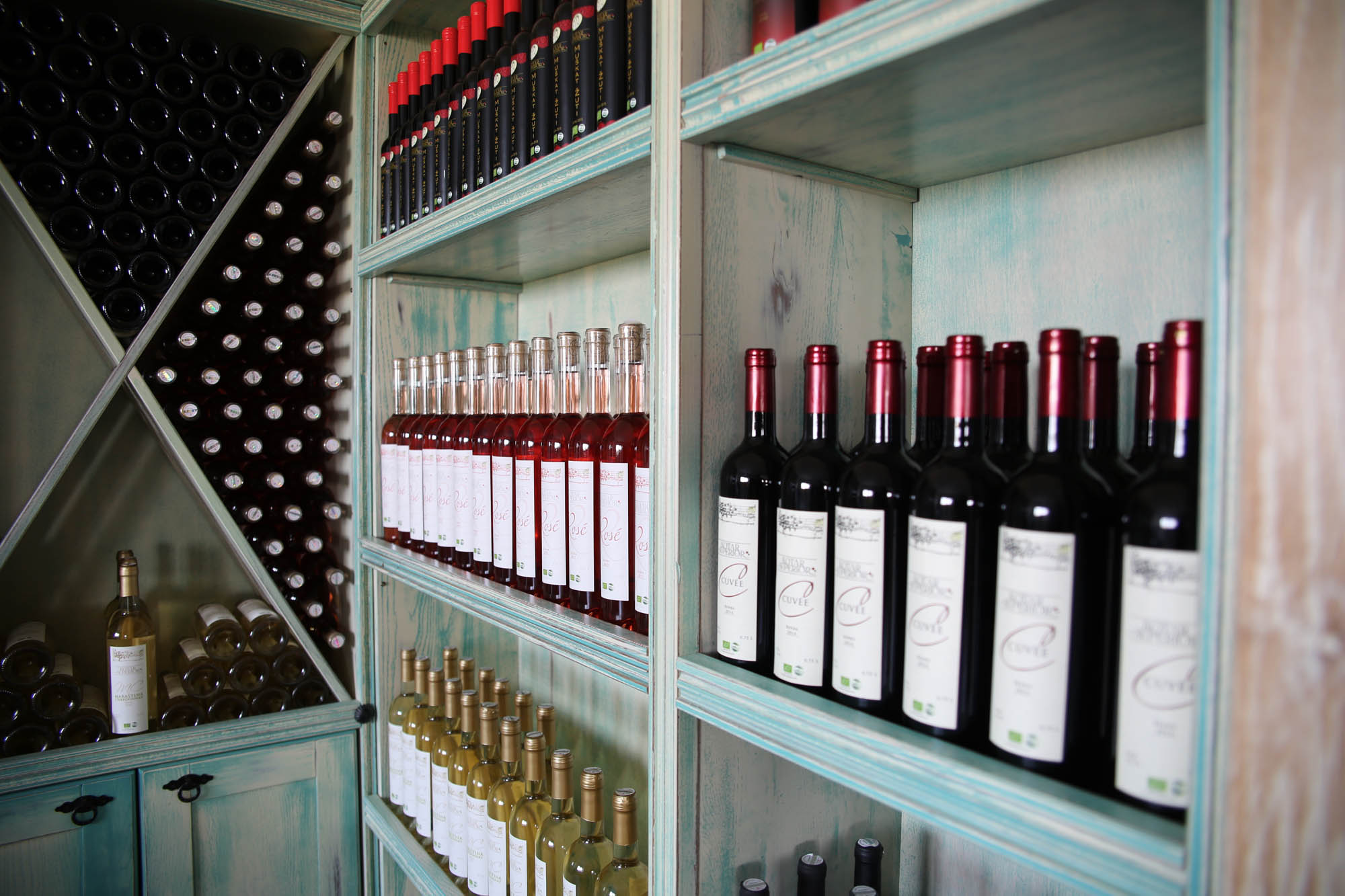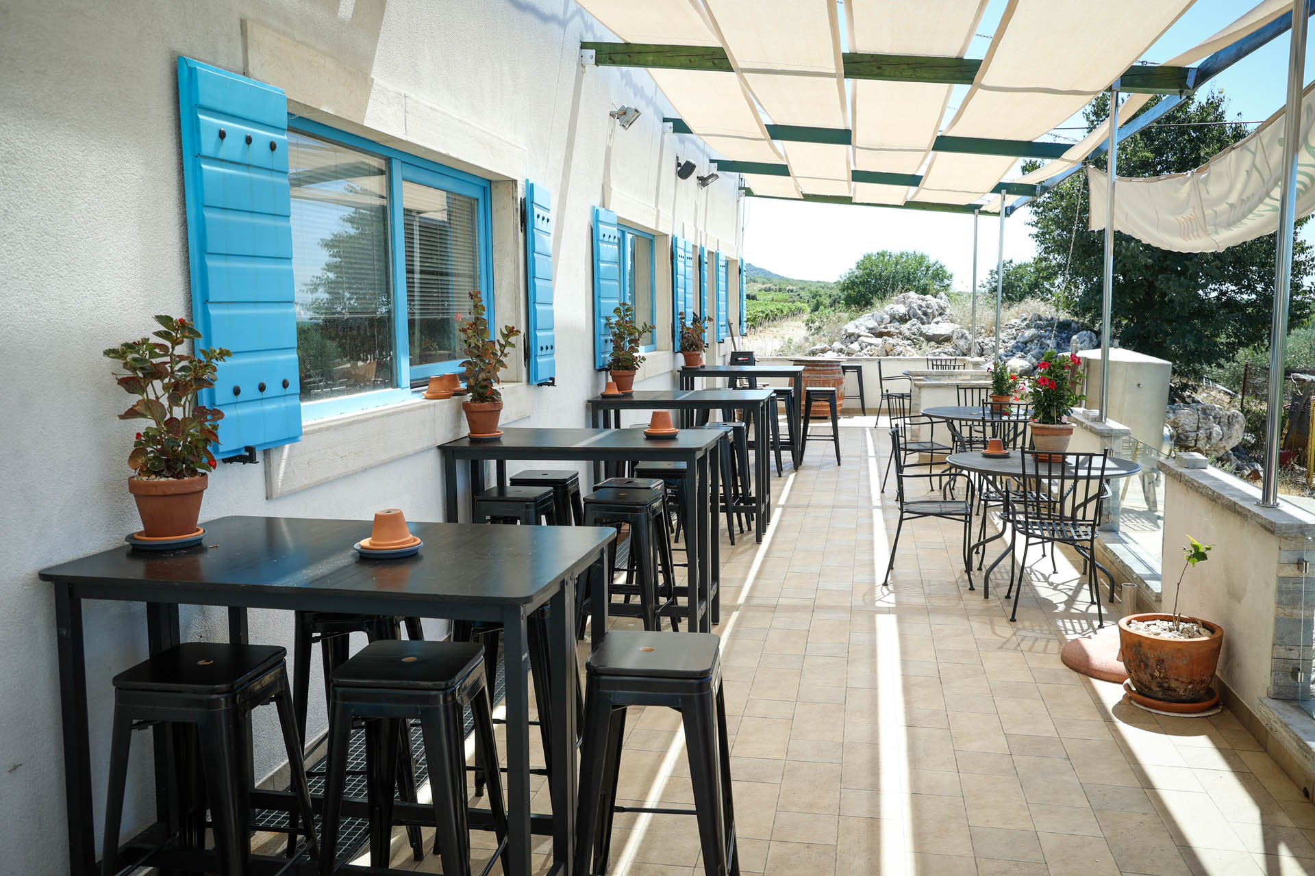 We have our own oil mill, a production system for wine, and a wine cellar at our estate. Moreover, at the same place is a shop and a tasting room where visitors and guests may taste our products (wine, extra virgin olive oil, edible olives, fig jam, olive leaf tea, dried figs) as well as local producers’ products like organic almonds, honey, anchovies, Dalmatian prosciutto, bacon, Pag’s cheese.