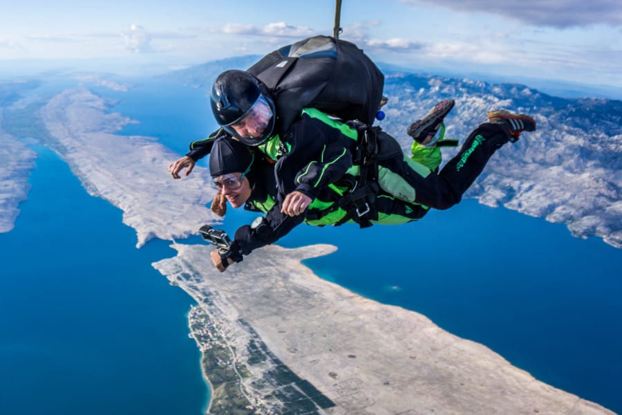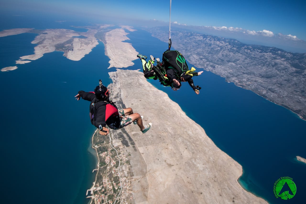 After a beautiful 15 minute panoramic flight above the National parks Kornati and Paklenica, we will reach our skydiving altitude. We will jump from as high up as 4000 meters AGL (above ground level) and free falling at speeds of 200 – 220 kph for up to 60 seconds.